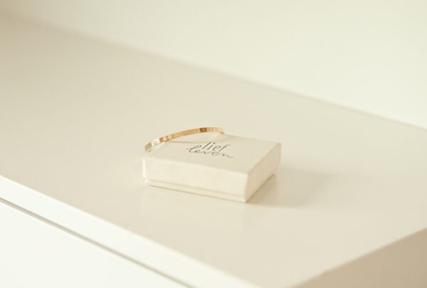 Deze roestvrije stalen armband is verkrijgbaar in goudkleur of zilver (douche-proof!). Kliksysteem om te openen. Diameter 6 cm.