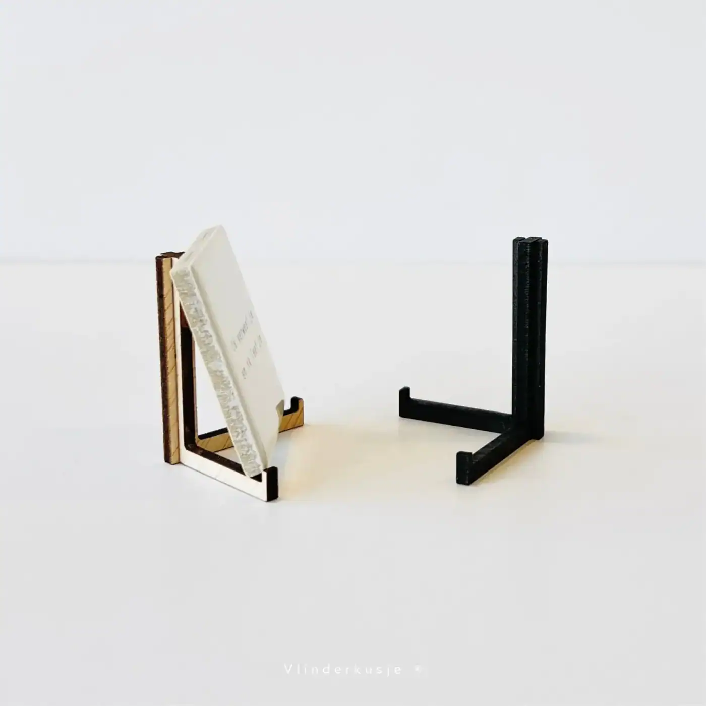 Houten standaardje van Vlinderkusje van 5,5 x 5,5 groot.