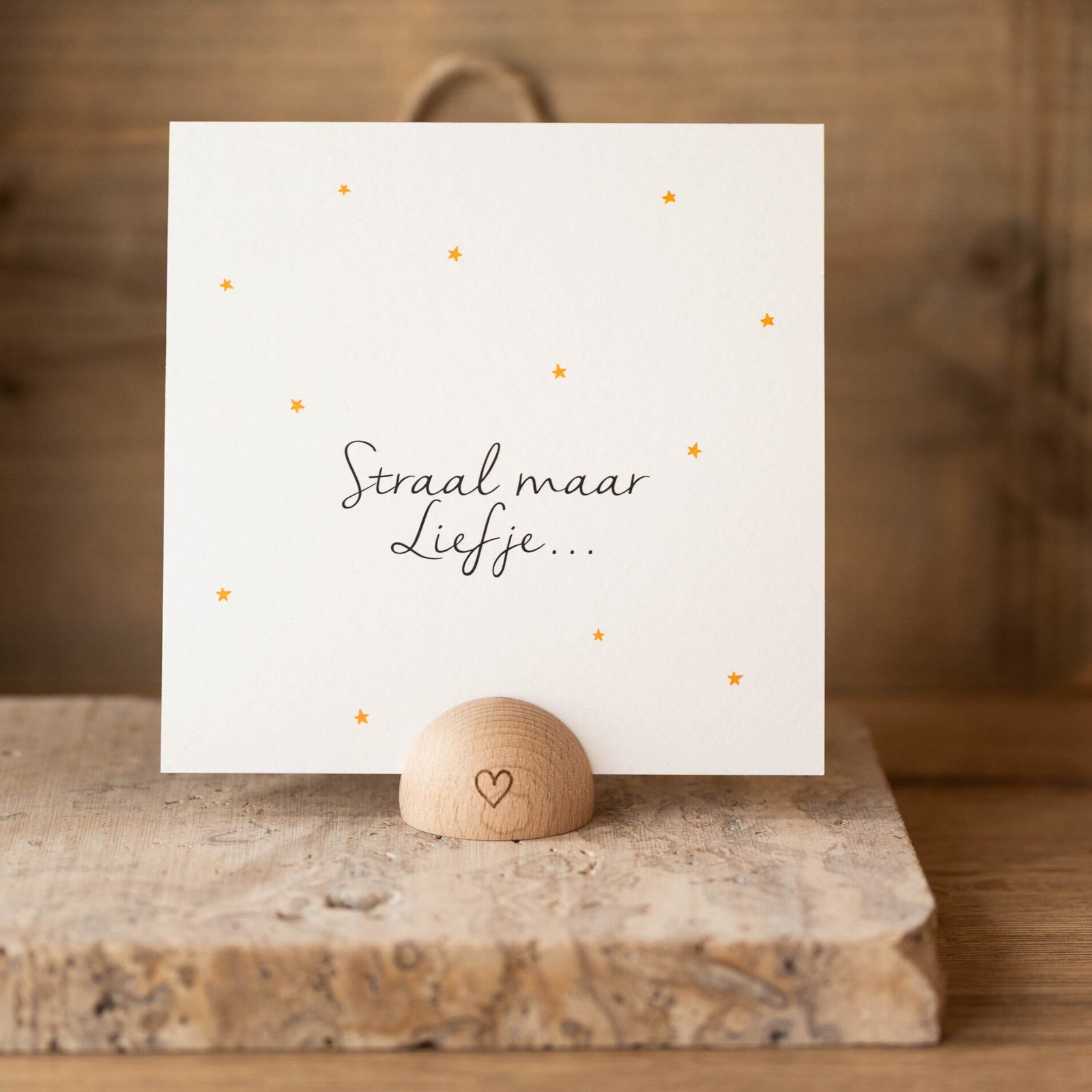 Deze schattige houten kaartenhoudertjes zijn ideaal om jouw favoriete foto of wenskaart een mooi plaatsje op de kast te geven.