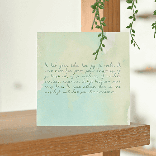 De wenskaart wordt geleverd inclusief witte enveloppe (let op, dit is geen courant formaat en heeft twee zegels nodig bij verzending).