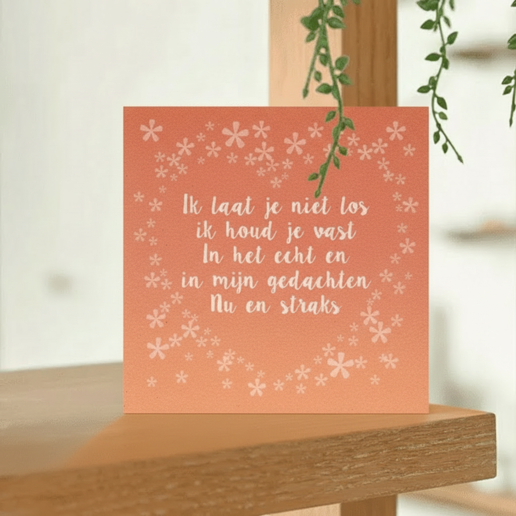 De wenskaart wordt geleverd inclusief witte enveloppe (let op, dit is geen courant formaat en heeft twee zegels nodig bij verzending).