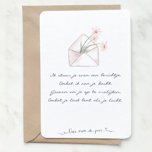 Wenskaart met aquarel schildering en het onderstaande gedichtje. A6 formaat. Inclusief envelop van gerecycled papier.
