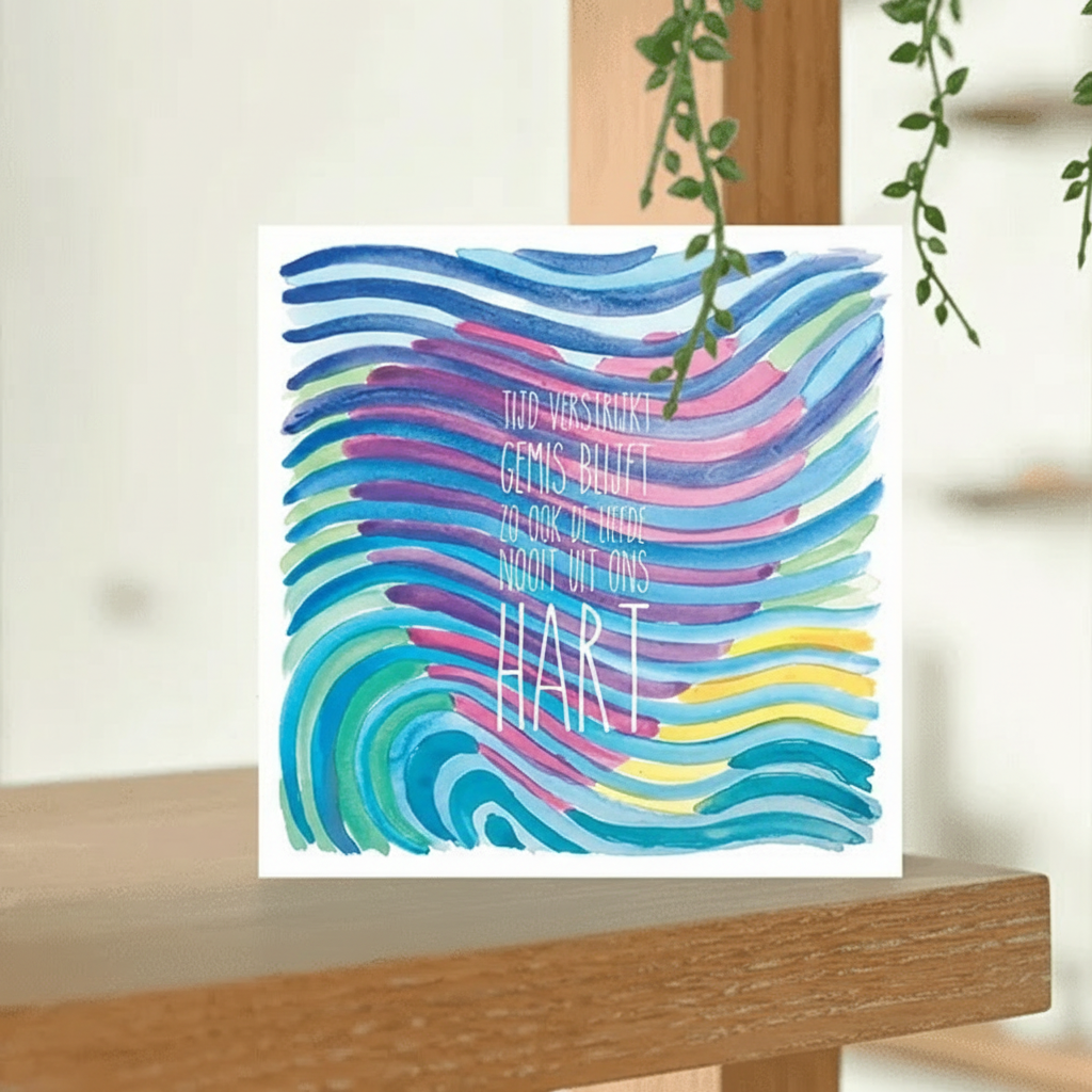 De wenskaart wordt geleverd inclusief witte enveloppe (let op, dit is geen courant formaat en heeft twee zegels nodig bij verzending).